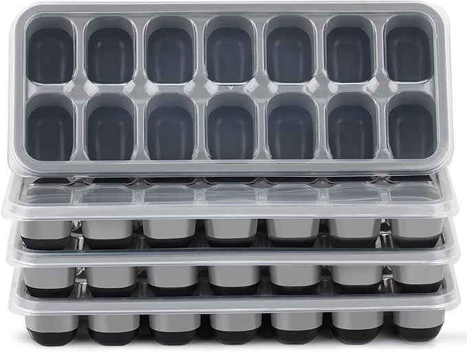 Stackable & Removable Lid: These covered ice cube trays come with removable lids, which allow you to stack them in the freezer and save tons of space. The lids also keep the freezer smell and taste out of the water, so you can enjoy clear and clean ice cubes.